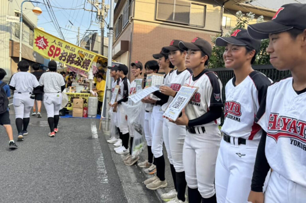 先生:Yellz担当者との打ち合わせから、プロジェクトのページ立ち上げ、告知用ポスター制作、店舗をはじめあらゆる場所へのポスター掲示、地域のイベントやボランティアなどでの告知、支援いただいた方への手書きの礼状など、すべてプロジェクトリーダーの部員が中心となって進めました。ポスターは600枚ほど用意し、分担して掲示のお願いに回りました。小・中学生時代に所属していたチームの関係者など、知っている方から支援いただいた際は、できる限り直接お礼を伝えることを心がけました。転機となったのは大変な思いをしながら活動した部員たちの気づきです。例えば少年野球をやっている方に、単に「遠征費を支援してほしい」とだけ言っても、「皆そうだよね」で終わってしまいます。地域には本校に女子硬式野球部があることすらご存じない方も少なくなく、女子野球そのものも含めた「認知度の低さ」を痛感したことも大きかったですね。自分たちが活躍することで、女子野球を続けやすい環境づくりのきっかけにしたいという思いをきちんと伝えるようになりました。